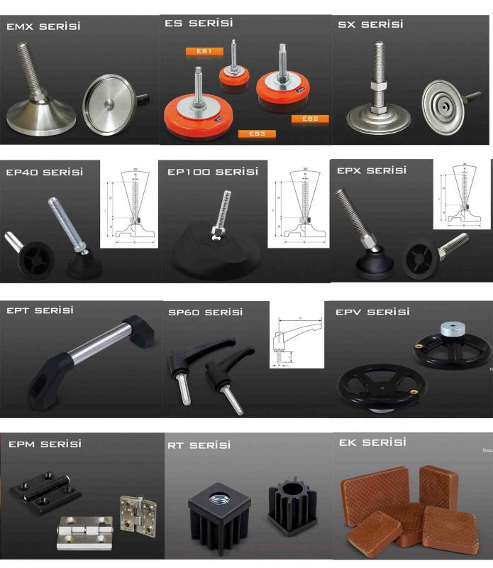 Adetli olmak kaydı ile özel ölçülerde imalat yapılmaktadır. Makina Ayakları Paslanmaz makina ayakları Titreşim takozları Tutamaklar Volan kolları