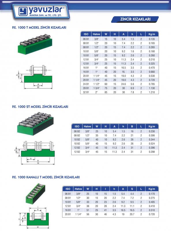 Hizalama için kullanılan ve aşınmaz malzemeden yapılmış zincir kızaklarının yanında yine aşınmaz malzeme veya istediğiniz herhangi bir teknik plastikle ile istediğiniz teknik resmi olan ürünleri imal etmekteyiz.